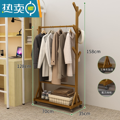 敬平简易衣架落地小型阳台衣服架子家用卧室晾衣杆多功能衣帽架挂衣架 [升级款]70长-茶色 大晾晒架