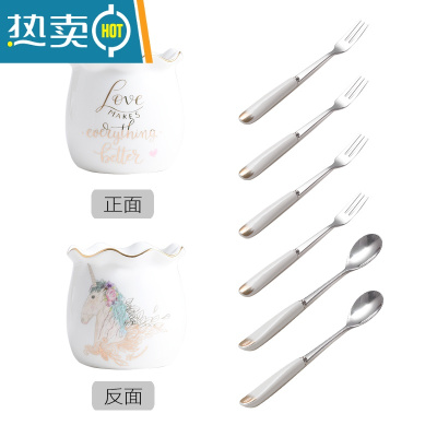 敬平家用时尚水果叉套装创意不锈钢水果叉子可爱点心叉个性甜品小叉签 独角兽矮瓶(4叉2勺)牙签