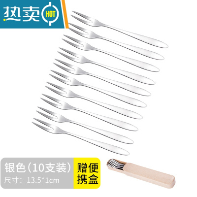 敬平水果叉套装304不锈钢水果叉子家用点心叉蛋糕甜品叉咖啡搅拌勺 10只装银色[304不锈钢](送便携盒)牙签