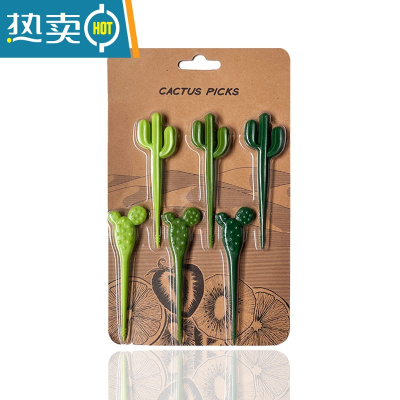 敬平创意ins仙人掌水果签儿童卡通可爱牙签点心果插网红水果叉子塑料 仙人掌叉子6支装[塑料款] [掌柜推荐]