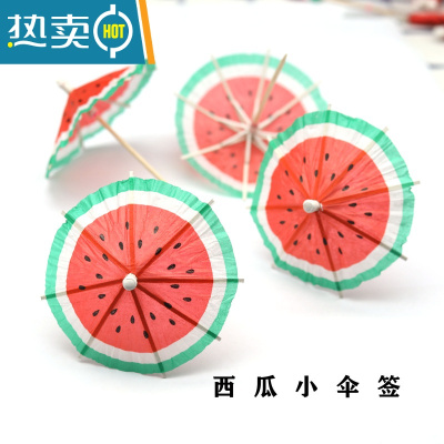 敬平花纸小雨伞鸡尾酒水果点心拼盘摆盘迷你创意装饰签刨冰甜品西瓜伞 西瓜伞2包 10cm 约100个牙签
