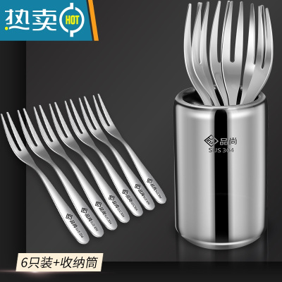 敬平304不锈钢水果叉创意卡通水果签果插可爱点心甜品小叉子套装 欧式水果叉6支+304不锈钢收纳桶