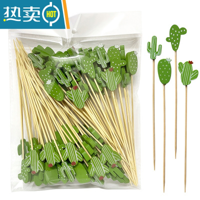 敬平创意ins仙人掌水果签儿童卡通可爱牙签点心果插网红水果叉子塑料 混搭仙人掌100支/包[竹签款] [掌柜推
