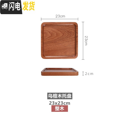 三维工匠 日式黑胡桃木托盘 实木干泡茶盘简约餐盘长方形餐盘点心盘 乌檀木-23x23-整木茶具
