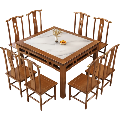 豫龙都 实木餐桌 一桌八椅 套