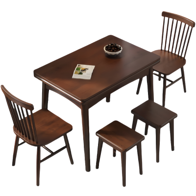 豫龙都实木餐桌一桌二椅二凳套