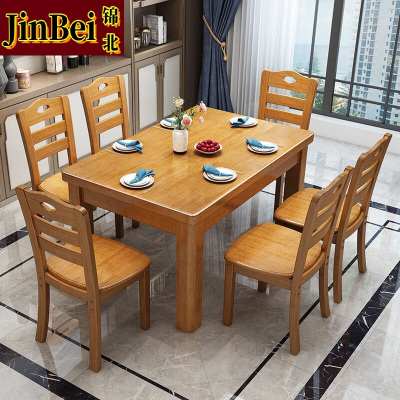 锦北餐桌椅组合长方形木质现代简约家用客厅餐桌 145cm1桌6椅榉木
