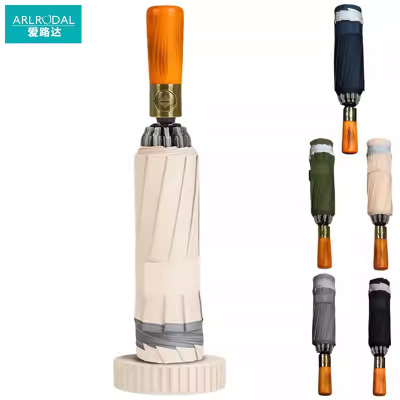 爱路达 原木柄反光条10骨三折自动雨伞ALT10/把