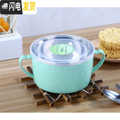 三维工匠不锈钢泡面碗带盖双耳单个宿舍学生饭盒日式可爱方便面碗餐具大号 北欧绿(无赠品)
