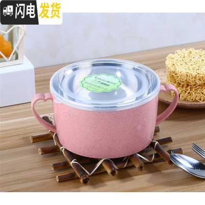 三维工匠不锈钢泡面碗带盖双耳单个宿舍学生饭盒日式可爱方便面碗餐具大号 北欧粉(无赠品)