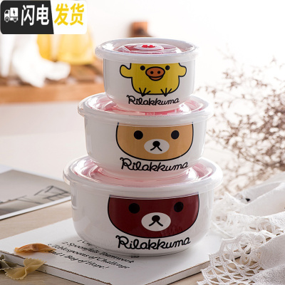 三维工匠陶瓷保鲜碗三件套冰箱收纳盒微波炉碗密封带盖大号便当盒面碗定购 轻松熊(关注收藏优先发货)