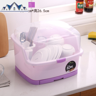 塑料透明带盖碗柜带沥水架碗架家用翻盖放碗箱带排水管碗筷收纳盒 三维工匠收纳层架