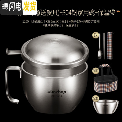 三维工匠饭盒上班族学生餐盒大容量304不锈钢泡面碗单个碗筷套装带盖宿舍 饭碗+送餐具+保温袋+家用碗