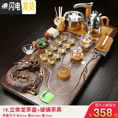 三维工匠茶具套装家用简约全自动紫砂功夫整套陶瓷冰裂一体实木茶盘 19款立体龙玻璃 24件