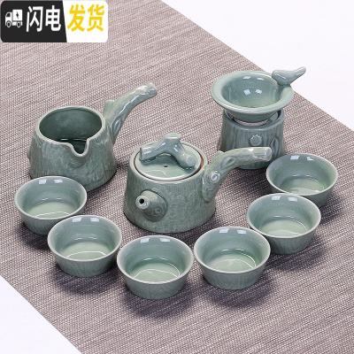 三维工匠喝茶茶杯套装陶瓷哥窑家用简约茶碗冰裂釉汝窑茶具小套功夫泡茶壶 10头汝窑款式13西施