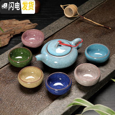 三维工匠陶瓷冰裂功夫茶具套装家用喝茶水杯茶壶整套茶具陶瓷茶道办公简约 浅湖兰-七彩茶具 7件