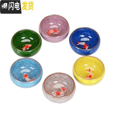 三维工匠冰裂小鱼功夫茶具 陶瓷茶杯茶碗 紫砂茶壶多彩六色日式品茗杯 彩色6杯