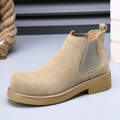 切尔西靴子新款春秋厚底休闲高帮单靴英伦风方头短靴加绒男靴