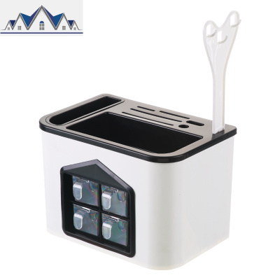 厨房置物架不锈钢黑色台面多层筷子刀架油盐酱醋调味品调料收纳架 三维工匠
