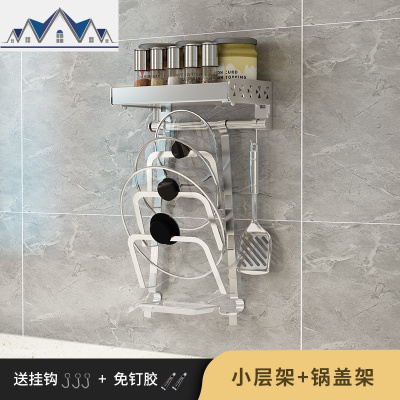 304不锈钢厨房置物架壁挂式免打孔调味料墙上 碗碟架锅盖刀收纳架 三维工匠