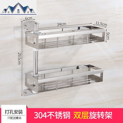 304不锈钢厨房转角置物架免打孔 壁挂式旋转调味料架子墙上收纳架 三维工匠