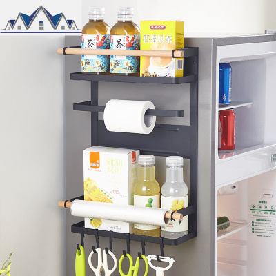 多功能厨房冰箱侧面置物架保鲜膜磁吸纸巾免打孔调味料壁挂储物架 三维工匠