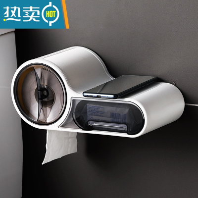 敬平卫生间纸巾盒厕纸盒免打孔防水纸巾架创意卷纸筒厕所卫生纸置物架 防水卷纸架[小抽屉可收纳置物]
