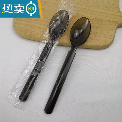 敬平叉子加厚长柄塑料叉餐叉外卖西餐意面叉子加长果叉单独包装 黑色勺子 独立包装100只牙签