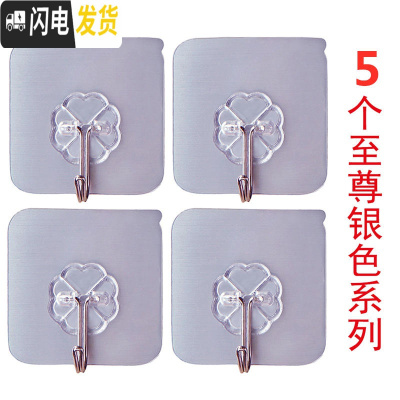 三维工匠强力粘钩浴室厨房透明挂钩免打孔阳台衣柜宿舍女单个无痕收纳挂钩 5个[银色]买2送1
