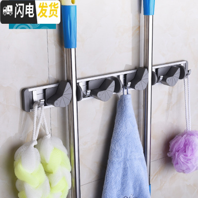 三维工匠拖把挂钩墙上固定卡扣卫生间壁挂无痕免打孔强力承重拖把夹卡 灰色[2个装]