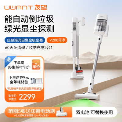 uwant友望吸尘器家用无线手持 智能基站自动集尘 巨幕绿光 毛发防缠绕 60天免打理尘袋 V200双电池