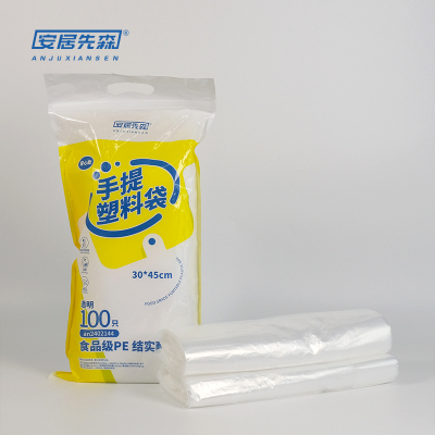 安居先森环保透明背心款手提塑料袋食品袋30*45cm 100只/包