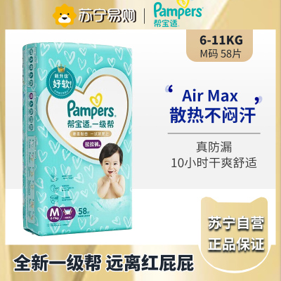 帮宝适一级帮拉拉裤尿不湿尿裤成长裤超薄透气 散热®M58片(6-11kg)