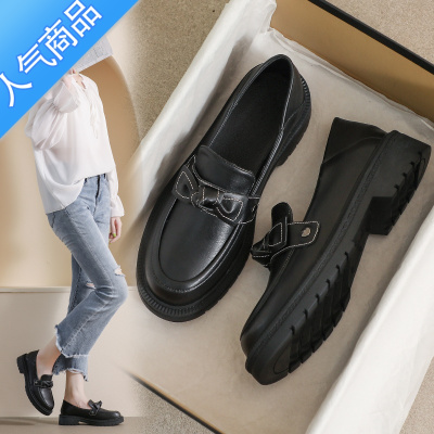 SUNTEK小皮鞋女高跟乐福鞋2023夏季新学院风粗跟单鞋jk制服鞋