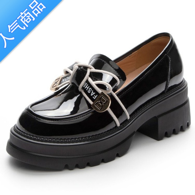 SUNTEK复古英伦风小皮鞋女2023秋季新款厚底松糕鞋粗跟JK漆皮乐福鞋