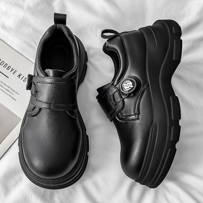 皮鞋男休闲英伦厚底大头皮鞋时尚潮流亮皮理发师商务男鞋SJ