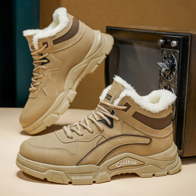 新款冬季男鞋真皮棉鞋男士加绒加厚保暖休闲皮鞋男防滑雪地靴