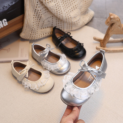 女宝宝2026年春季新款学步鞋蕾丝蝴蝶结装饰公主鞋洋气软底小皮鞋