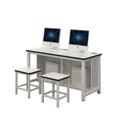 锦北 机房电脑桌微机室单双人培训电脑桌驾校培训考试桌子 1.4双人中机箱