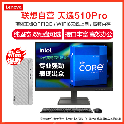联想(Lenovo)天逸510Pro 12代酷睿分体机台式电脑 (i5/16G/1T+256G/集显/19.5) 定制 商务办公学习个人家用企业采购台式机