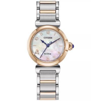 Citizen西铁城女款简约两色不锈钢链带腕表mm白色贝母表盘环保腕表