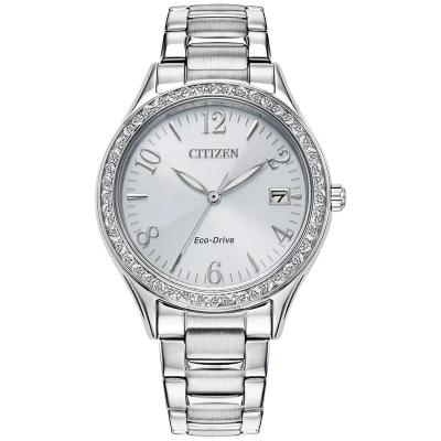 Citizen西铁城优雅白雪女款镶水晶手表mm不锈钢链带时尚腕表