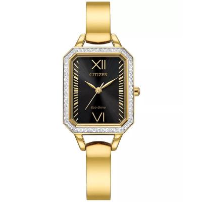 西铁城(CITIZEN)光动能矩形女款水晶金表女手表mm防水米潮流日韩表