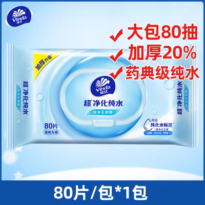 维达纯水湿巾80片大包装整箱实惠装家用男女成人婴儿擦手湿纸巾