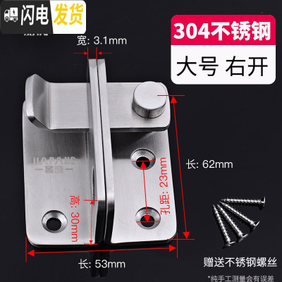 三维工匠304不锈钢插销扣移搭扣移锁插销明栓锁扣推拉锁 304不锈钢平面安装款-小号右开(螺丝无胶水)房门安全扣