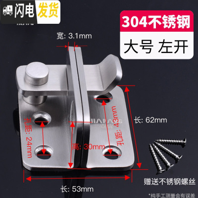三维工匠304不锈钢插销扣移搭扣移锁插销明栓锁扣推拉锁 304不锈钢平面安装款-小号左开(螺丝无胶水)房门安全扣