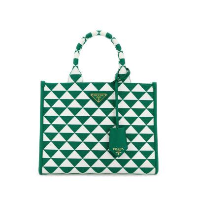 普拉达(PRADA)女款刺绣皮革小号购物袋时尚百搭配饰手提单肩包日