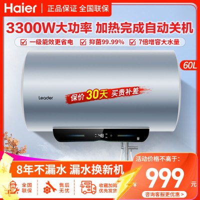 Leader海尔出品电热水器60升P3一级能效3300W变频速热健康抑菌安全防电墙家用储水式卫生间洗澡