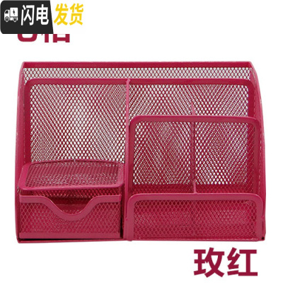 三维工匠3个铁艺多功能金属彩色笔筒塑料便签座文具时尚创意金属网状笔筒学生文具办公桌收纳盒子桌面摆 九格多功能笔筒(玫红)
