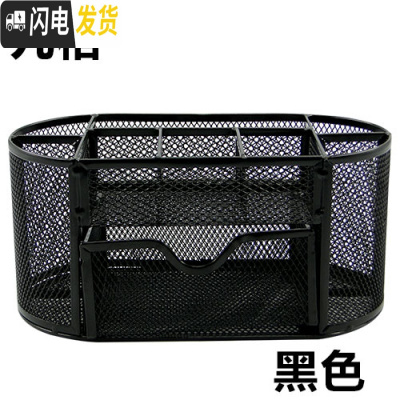 三维工匠3个铁艺多功能金属彩色笔筒塑料便签座文具时尚创意金属网状笔筒学生文具办公桌收纳盒子桌面摆 九格多功能笔筒(黑色)